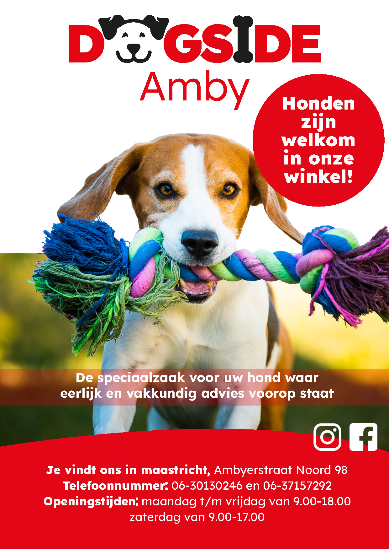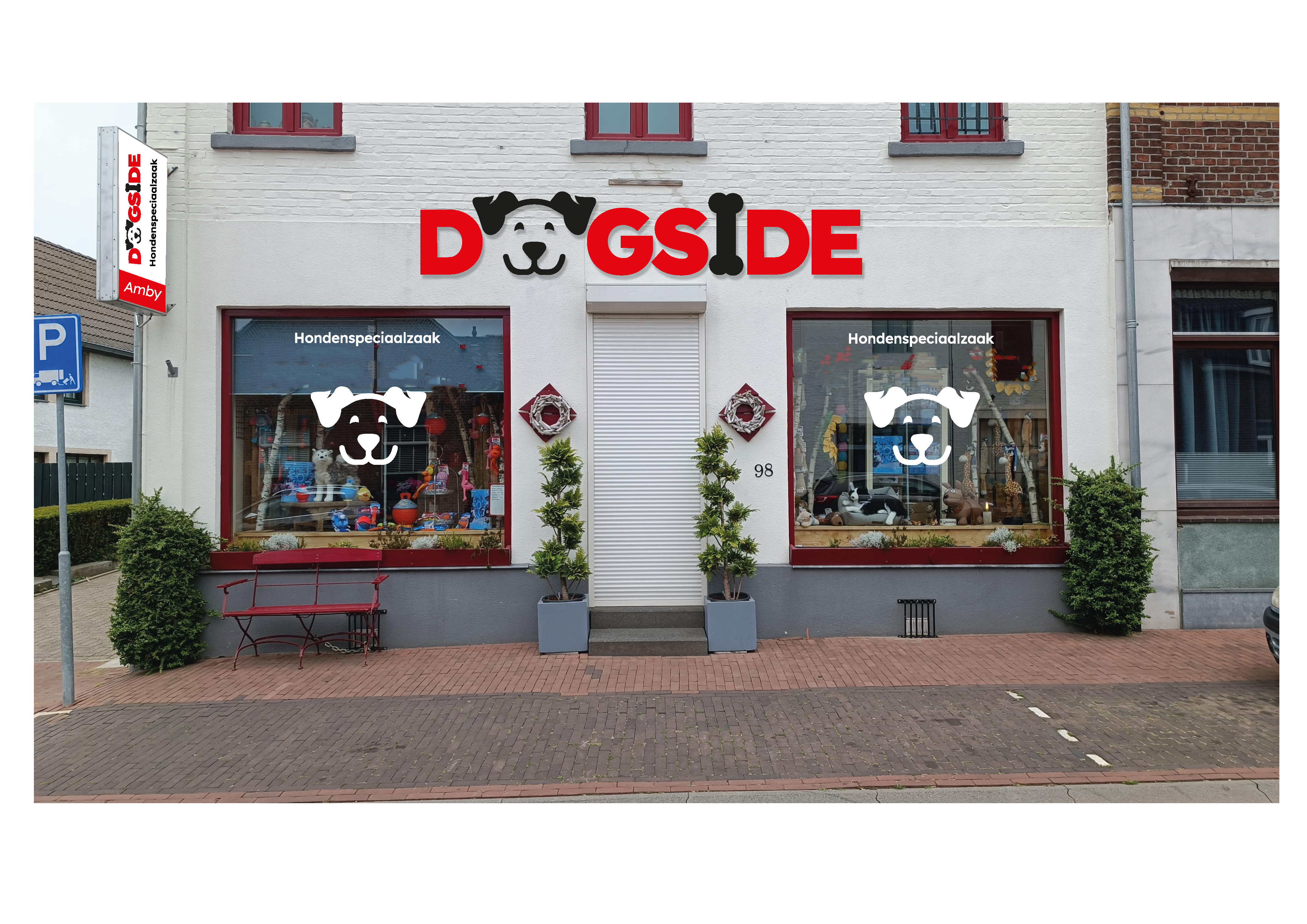 De klant Dogside Amby wilde graag voor hun honden speciaalzaak een logo, visitekaartje, advertenties en gevelbeletering hebben. Ik heb het logo ontworpen in Illustrator, daarna ben ik het visitekaartje en de advertenties gaan ontwerpen in Indesign. En dan heb ik de gevelbeletering gemaakt in Illustrator.