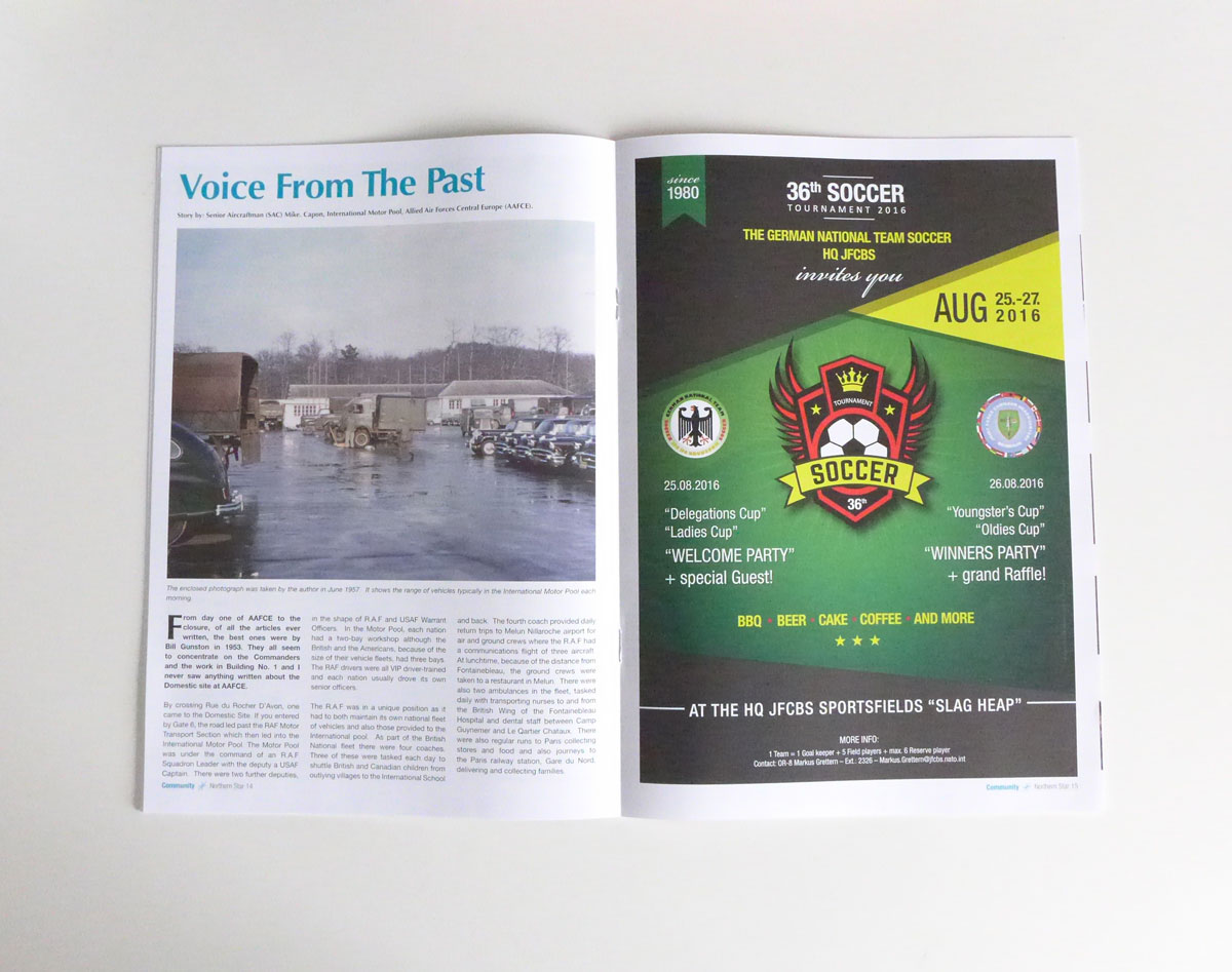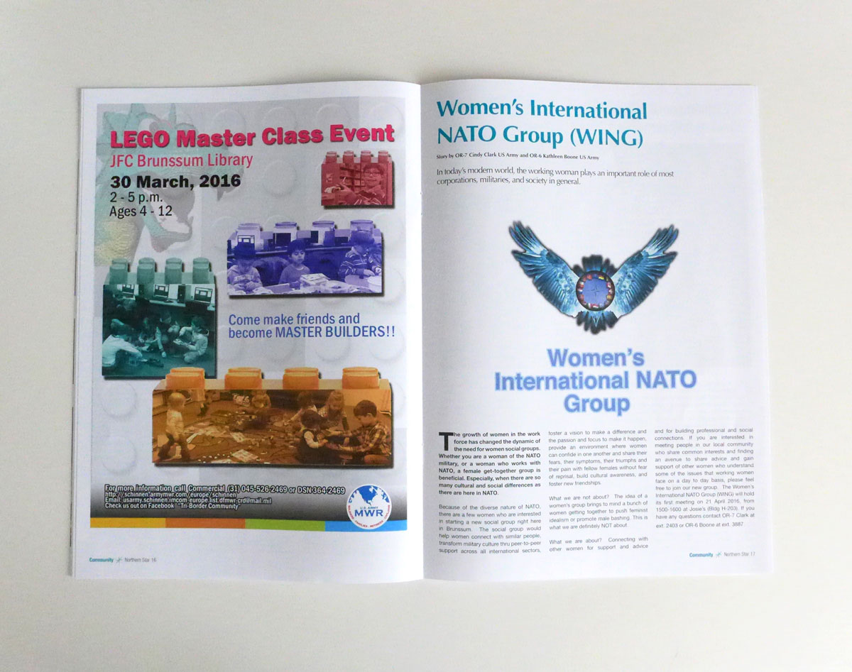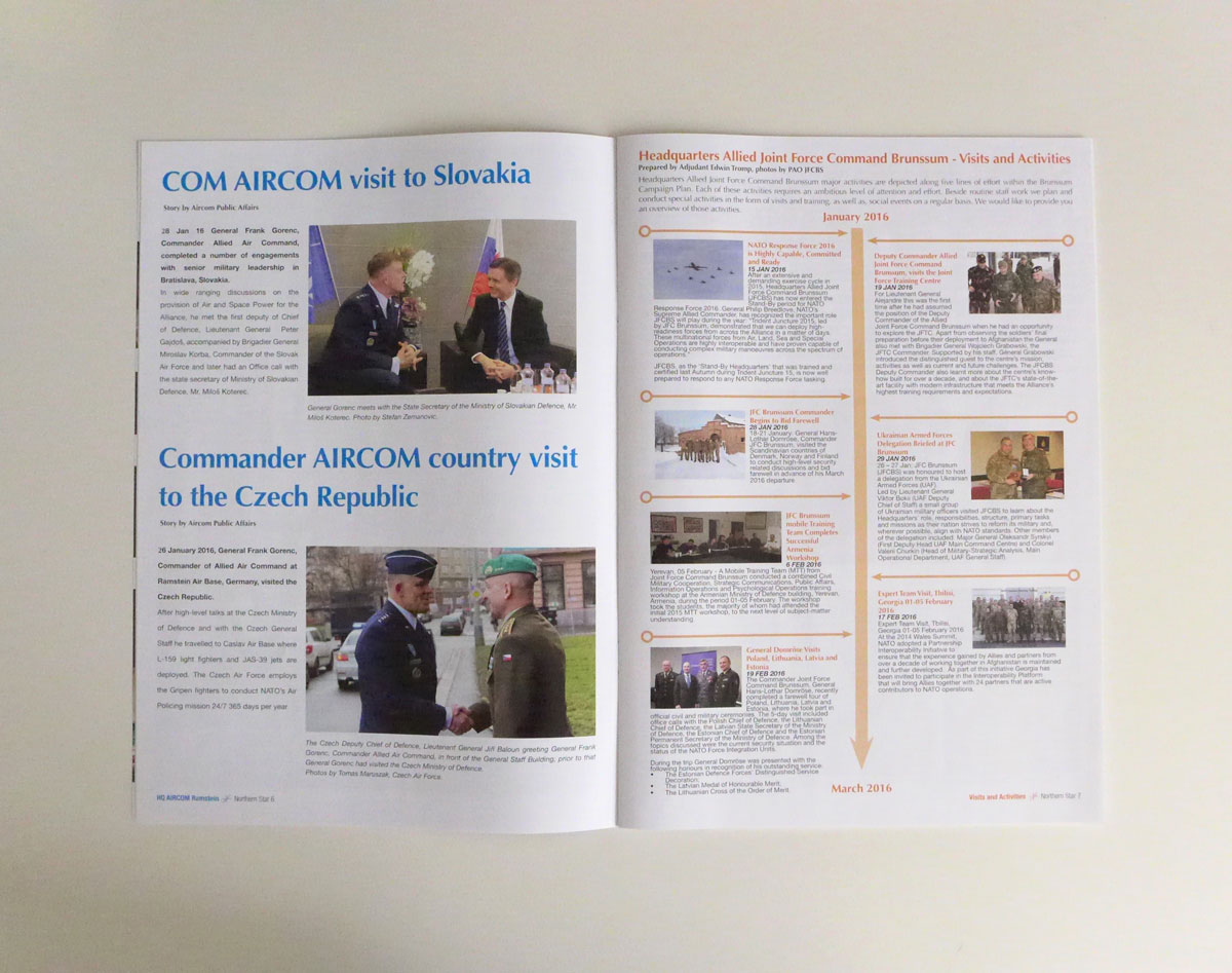 In de Northern Star heb je verschillende categorieën: News, Community, Visits and Activities, HQ AIRCOM Ramstein en Command Group Corner.