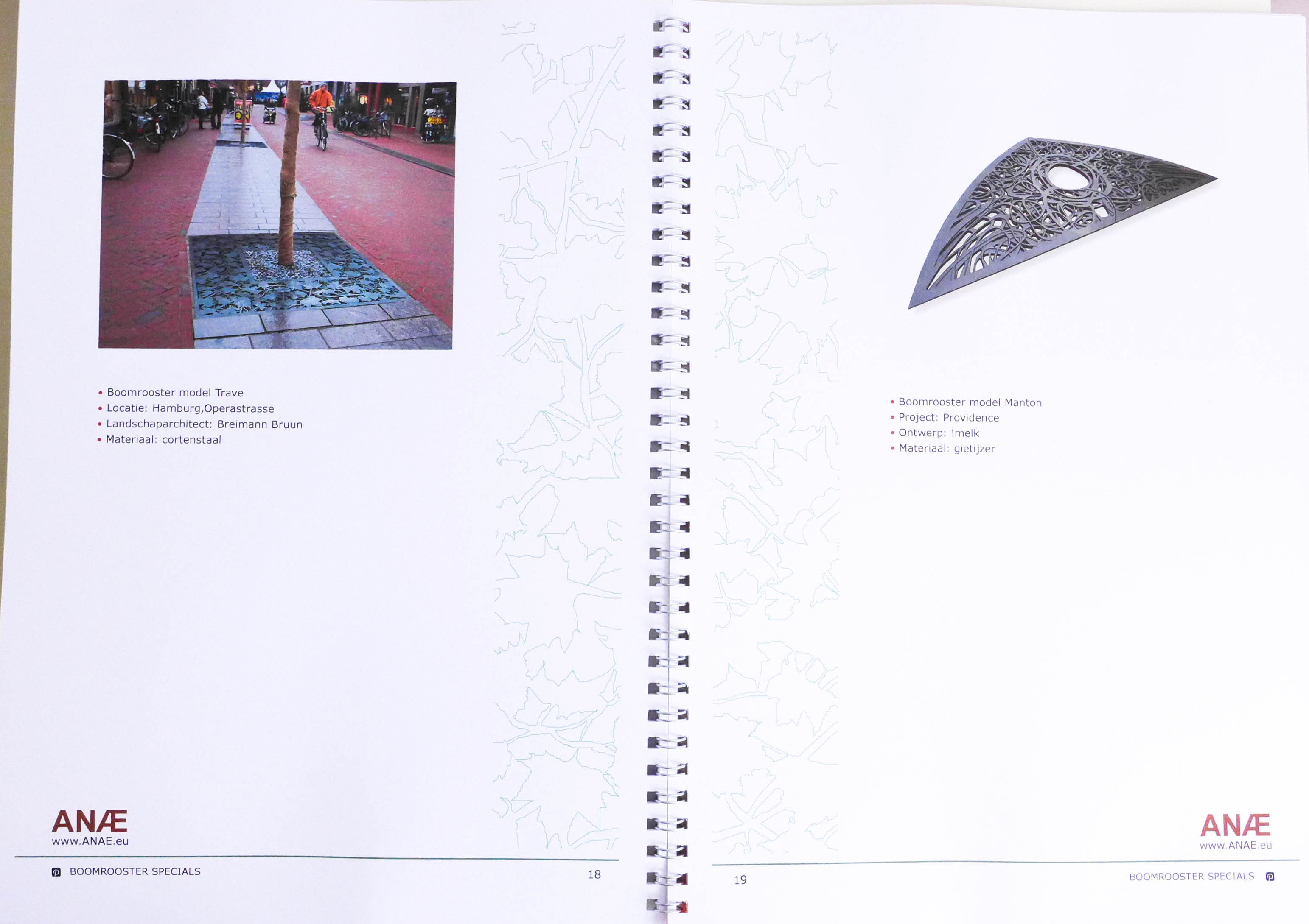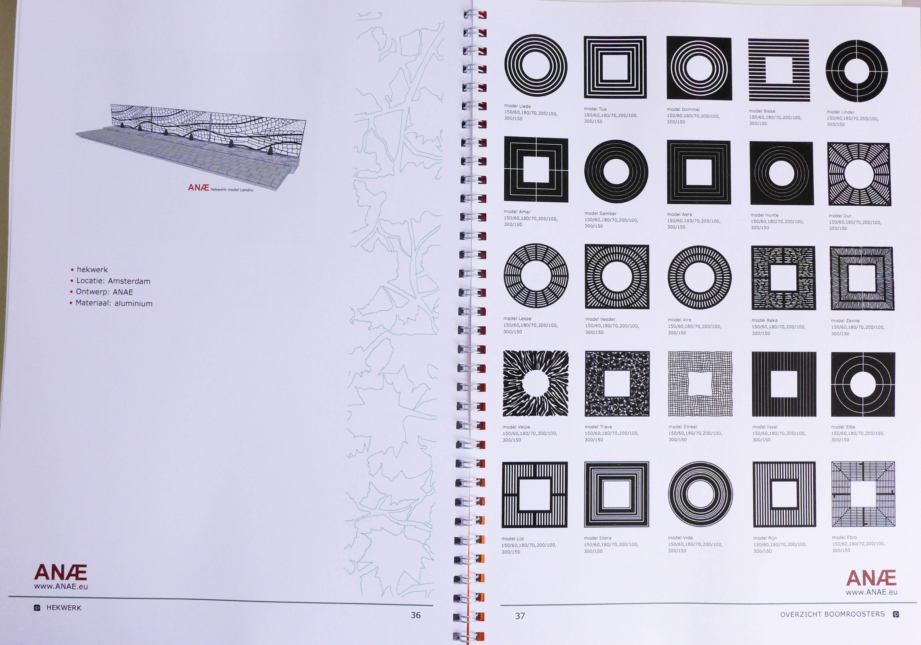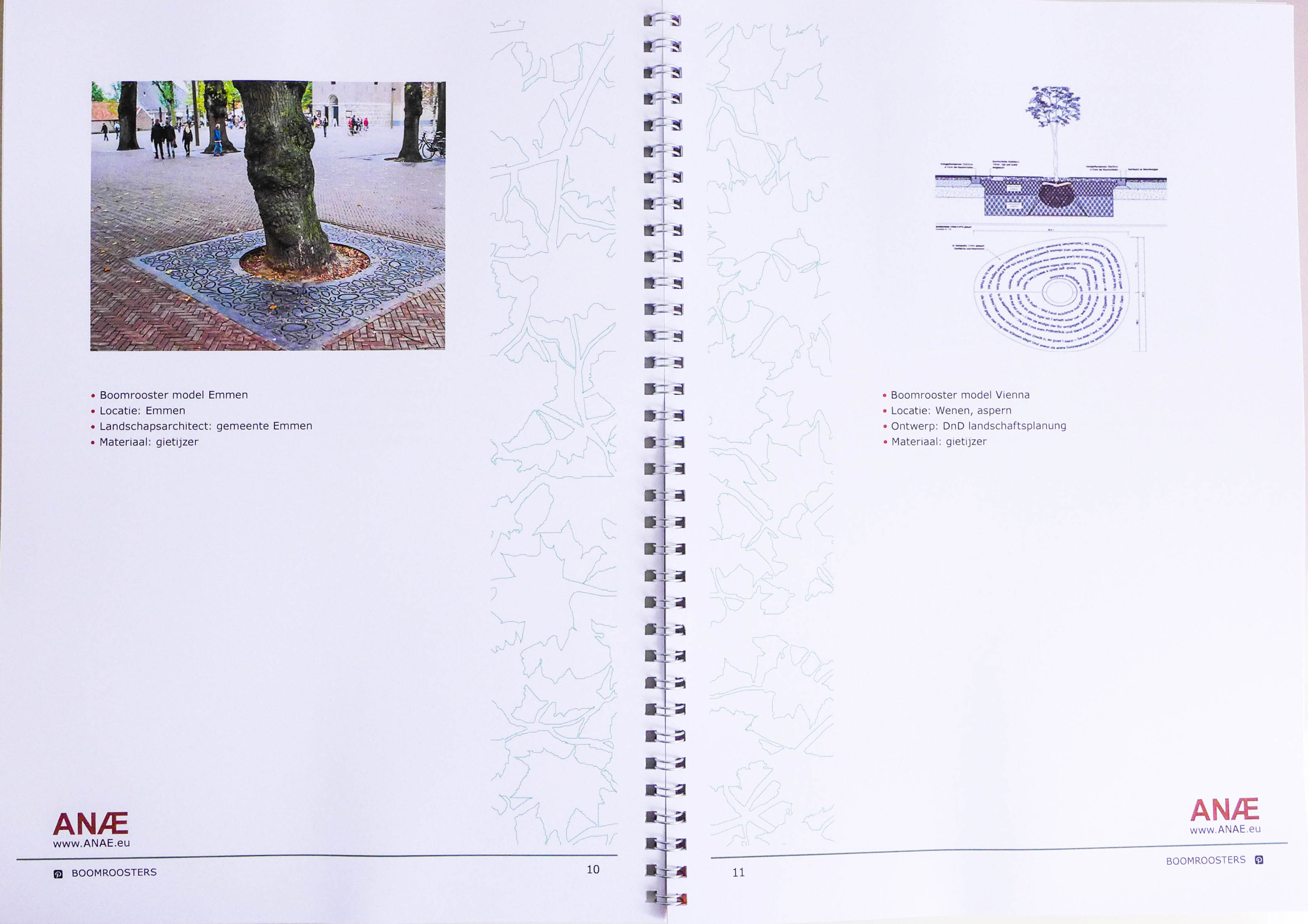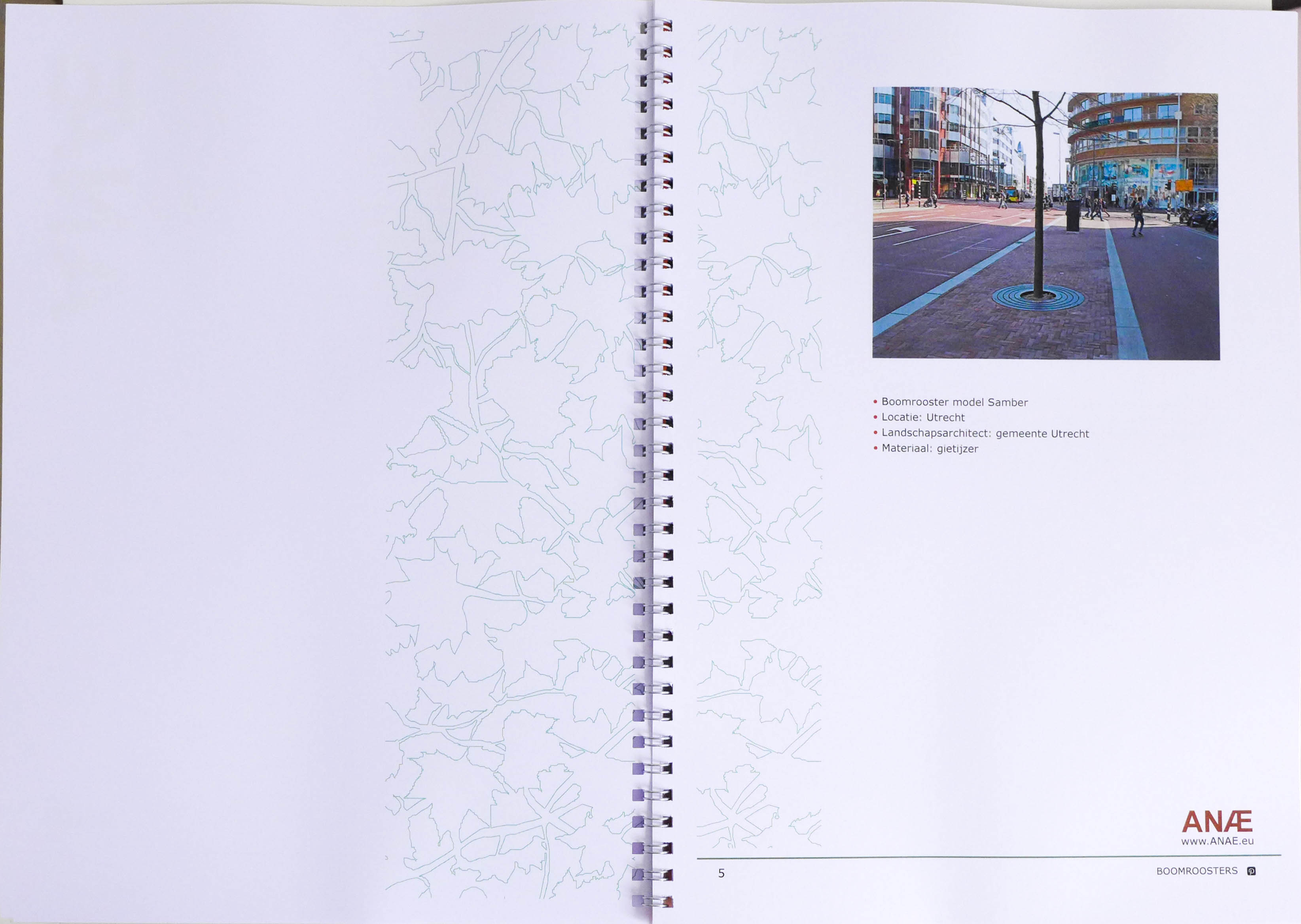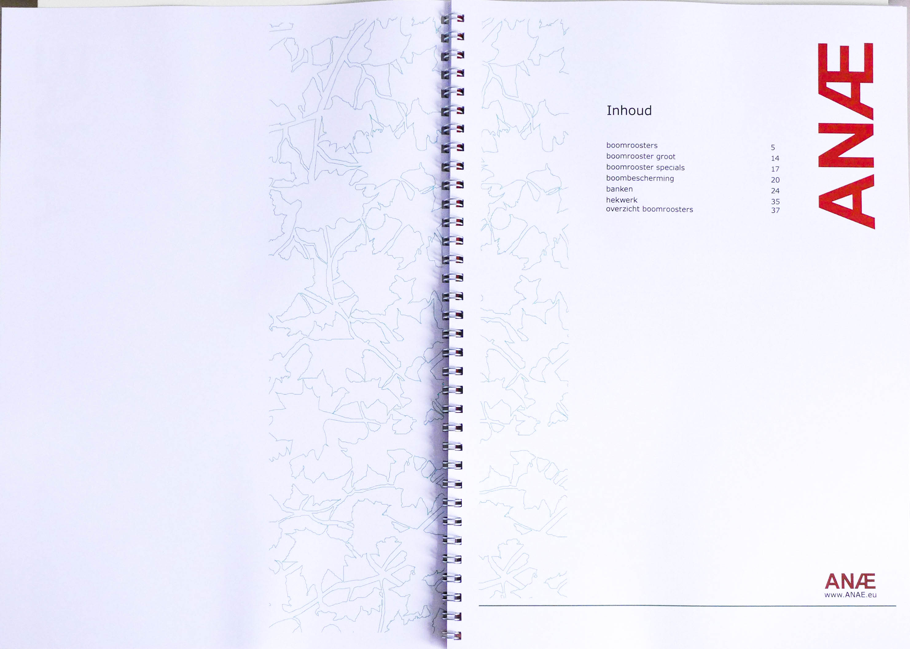 Op de voorkant heb ik een patroon gedaan van een boomrooster, de patroon komt op elke pagina terug.